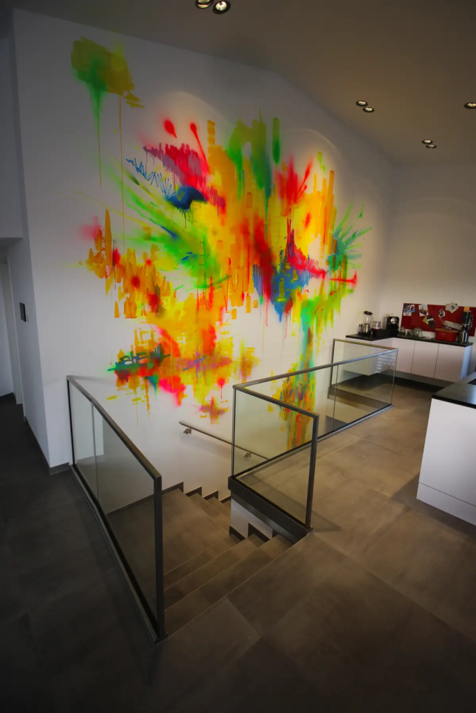 Wandgestaltungen im Innen- und Außenbereich sowie individuelle Leinwände – von Graffiti bis Urban Street Art – setzen wir auf Anfrage um oder bringen euch mit unseren Partnern aus der Kunstszene zusammen. Wir arbeiten mit Künstlerlacken und hochwertigen Streichfarben